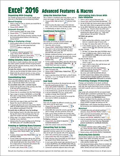 Download Microsoft Excel 2016 Advanced & Macros Quick Reference Guide - Windows Version (Cheat Sheet of Instructions, Tips & Shortcuts - Laminated Card) Doc